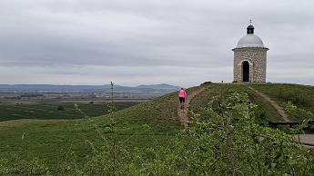 Na poslední burčákový půlden, čtvrtek 18.9. vyšla severní trasa, průjezd Moravským Toskánskem. Začali jsme rozhlížecí zastávkou - kapličkou na Hradišťku, pak jsem zdržoval focením plání a polí a vinohrady. Ostatní na mne počkali v Vrbicích, kde se Míša ztratila, protože důsledně plnila mé zadání - vyfotit komínky ze sklípků, to se mi totiž zatím nikdy uspokojivě nepodařilo. Míša komponovala fotku a my jí ujeli. Sešli jsme se ale na Kobylím vrchu, ze kterého jsme zkratkou, za sucha možnou jeli na Čejkovice. Tam jsem píchnul, blbě zadní kolo a pak předal vedení Pepovi, který na základě pobytů od firmy SWS Slušovice je místním znalcem. Slepě jsme tomu všichni věřili, včetně jeho a tak jsme si mohli vyzkoušet jízdu napříč zoraným polem. Oběd v Čejkovicích v restauraci Kuželna nás potěšil rozumnými cenami a zklamal proškrtaným jídelním lístkem. Za hlasitou sekačku jezdící trávníkem kolem nemohli. Letošní Burčák tour byl málo početný a vyznačoval se svižnou jízdou a dostatečnou burčákovitostí. |