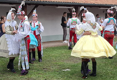 nejsem bohužel šikovná psavka. Ani psavec. V pondělí 15.9. jsme se sešli v poledne, pak vyzvedli Františka na vlakové zastávce Ladná a pokračovali do Břeclavi a Lanžhotu, kde jsme natrefili místní hody. V Moravské Nové Vsi jsme uctili památník vína Cabernet Moravia a také načerpali od vinaře burčák. Na informačních panelech jsme se dozvěděli, že přes Ves vedla Ferdinandova Severní dráha spojující Vídeň a Malopolsko a že zde byl největší parní válcový mlýn v republice. |