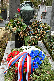 Další naše kroky vedly ke kostelu svatého Matěje (1770), kde jsme dostali volno k individuální prohlídce hrobů, tedy hrobů vzácných osobností. Já našel hroby Rašína, Bartošky a zaujal mne hrob Josefa Jíry, průkopníka archeologie. |