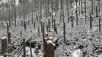 ![]() V údolí byl polom a také se kácelo |