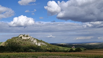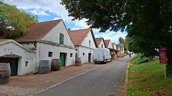 Trasa v úterý 16.9. vedla na jih do Rakouska. Od Dyje jsme se dokodrcali k ![]() V Herrnbaumgartenu (muzeum Nonseum zavřeno) jsme se v uličce se sklepy otočili zpět na sever. Zklamalo nás, že vinice s možností ochutnávky různých odrůd hroznového vína je zrušena a nákup ve vinné samoobsluze jsme nevyužili. Po obědě ve Valticích jsme ve Hlohovci opět nakoupili burčák, projeli kolem Hraničního zámečku a přes Rakvice Bílovickými vinicemi se vrátili na základnu. Večer jsem šel pořizovat kýčovité západy slunce |