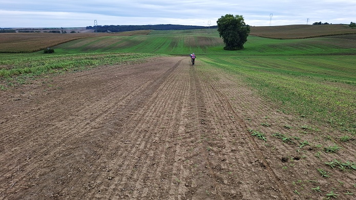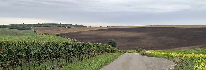 Na poslední burčákový půlden, čtvrtek 18.9. vyšla severní trasa, průjezd Moravským Toskánskem. Začali jsme rozhlížecí zastávkou - kapličkou na Hradišťku, pak jsem zdržoval focením plání a polí a vinohrady. Ostatní na mne počkali v Vrbicích, kde se Míša ztratila, protože důsledně plnila mé zadání - vyfotit komínky ze sklípků, to se mi totiž zatím nikdy uspokojivě nepodařilo. Míša komponovala fotku a my jí ujeli. Sešli jsme se ale na Kobylím vrchu, ze kterého jsme zkratkou, za sucha možnou jeli na Čejkovice. Tam jsem píchnul, blbě zadní kolo a pak předal vedení Pepovi, který na základě pobytů od firmy SWS Slušovice je místním znalcem. Slepě jsme tomu všichni věřili, včetně jeho a tak jsme si mohli vyzkoušet jízdu napříč zoraným polem. Oběd v Čejkovicích v restauraci Kuželna nás potěšil rozumnými cenami a zklamal proškrtaným jídelním lístkem. Za hlasitou sekačku jezdící trávníkem kolem nemohli. Letošní Burčák tour byl málo početný a vyznačoval se svižnou jízdou a dostatečnou burčákovitostí. |