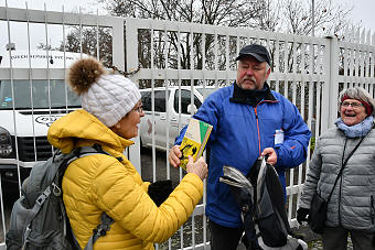 U kostela Karel pohovořil