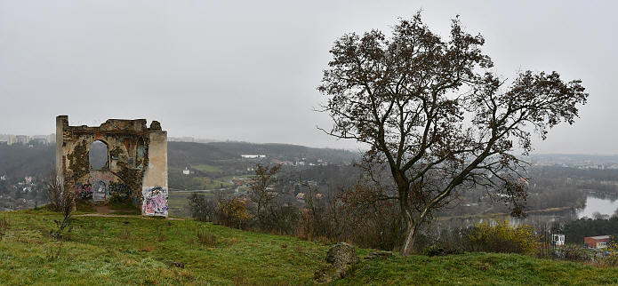 Největší na Prahu rozhledy byly od zříceniny viničného lisu ze 17. století z ostrohu Baby. |