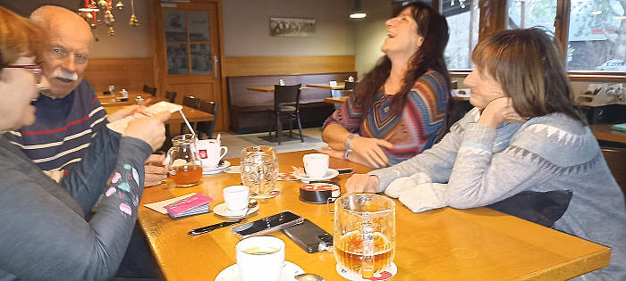 | Vyběhli jsme schody (na zahřátí) a byli jsme na Julisce. Zde Karel zavzpomínal na své návstěvy a také nás nechal zasoutěžit ve fotbalových znalostech. V soutěži vyhrála, jak jinak, největší fotbalová odbornice Alena 8. Prohlédli jsme si pomník Josefa Masopusta z května 2012, v roce 50. výročí mistrovství světa v Chile, kde ve finále dal jediný gól Československa. Pomník lemuje kruhový chodník slávy fotbalistů Dukly s otisky chodidel a jedním otiskem ruky Ivo Viktora. |